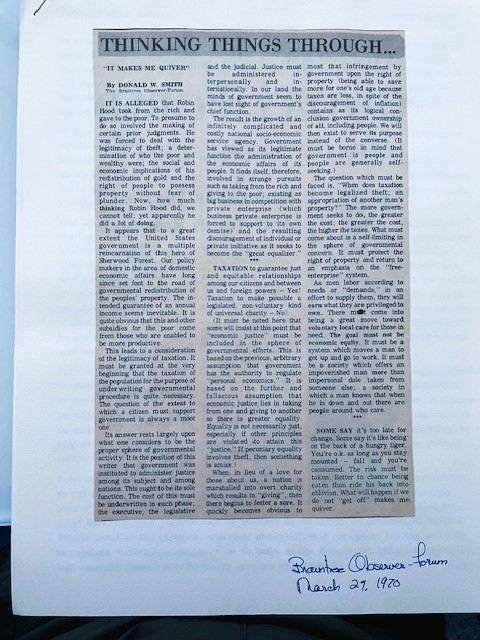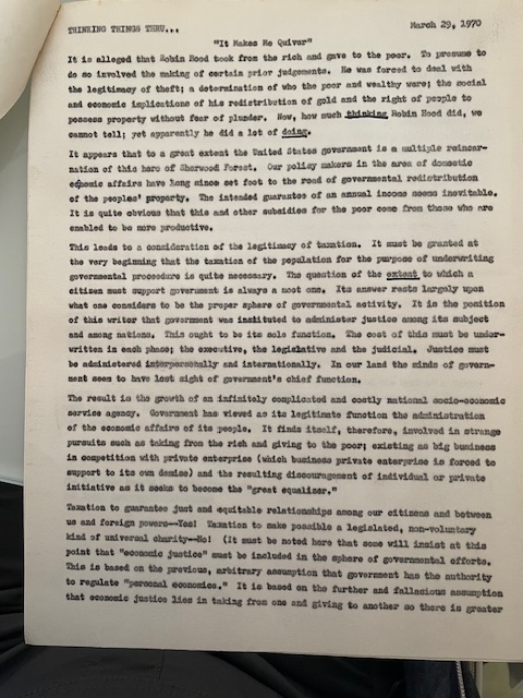 It appears that to a great extent the United States government is a multiple reincarnation of this hero of Sherwood Forest. Our policy makers in the area of domestic economic affairs have long since sent foot to the road of governmental redistribution of peoples property. The intended guarantee of an annual income seems inevitable. It is quite obvious that this and other subsidies for the poor come from those who are unable to be more productive.